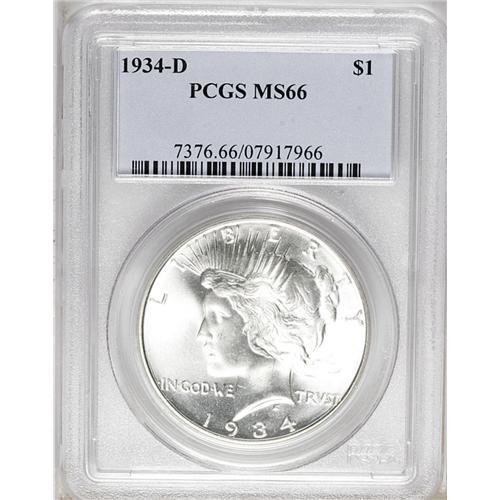 1934-D S$1 MS66 PCGS. An absolutely stunning coin, reg