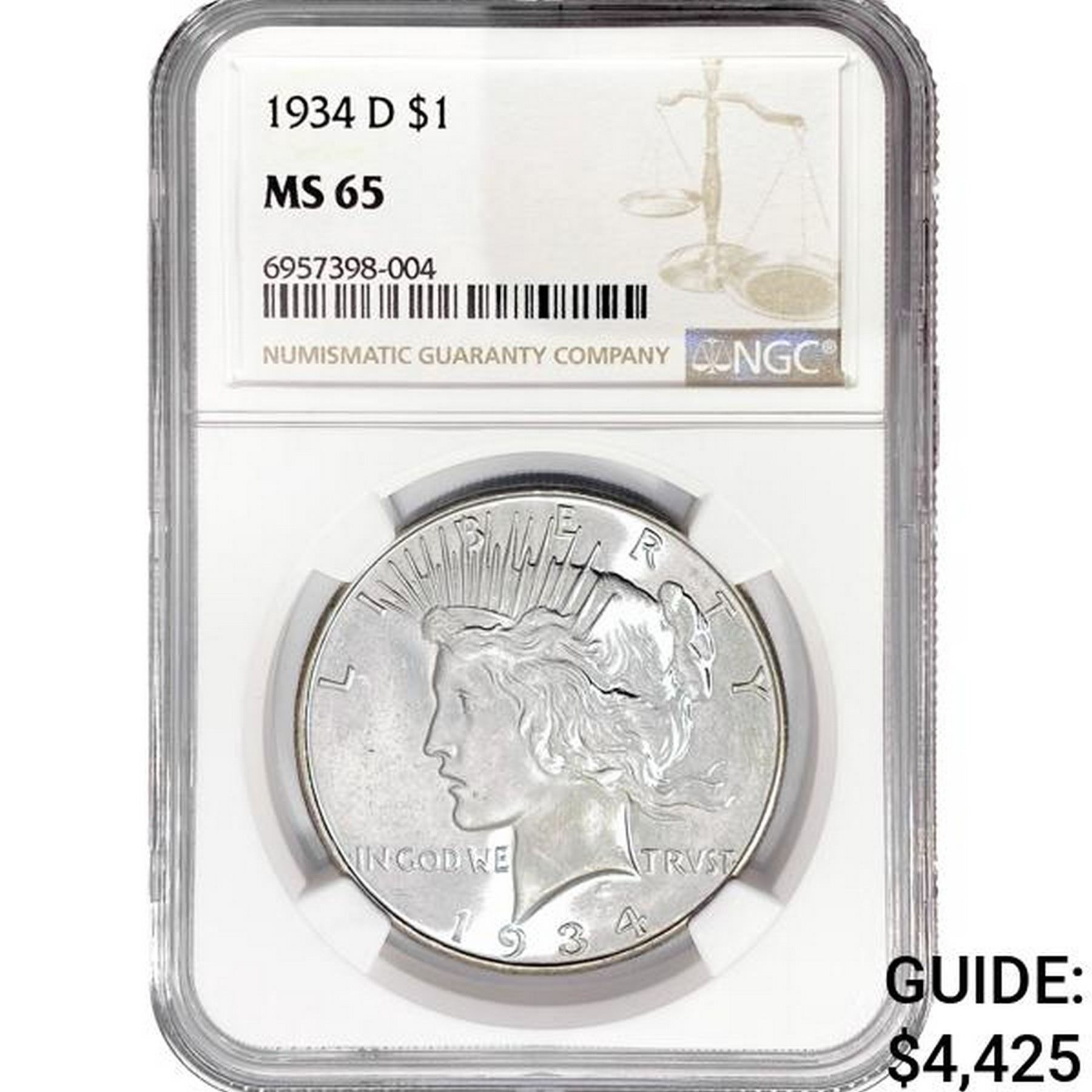 1934-D Silver Peace Dollar NGC MS65