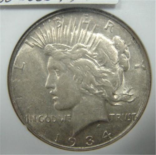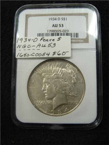 1934-D U.S. PEACE DOLLAR. Graded by NGC. AU 53.