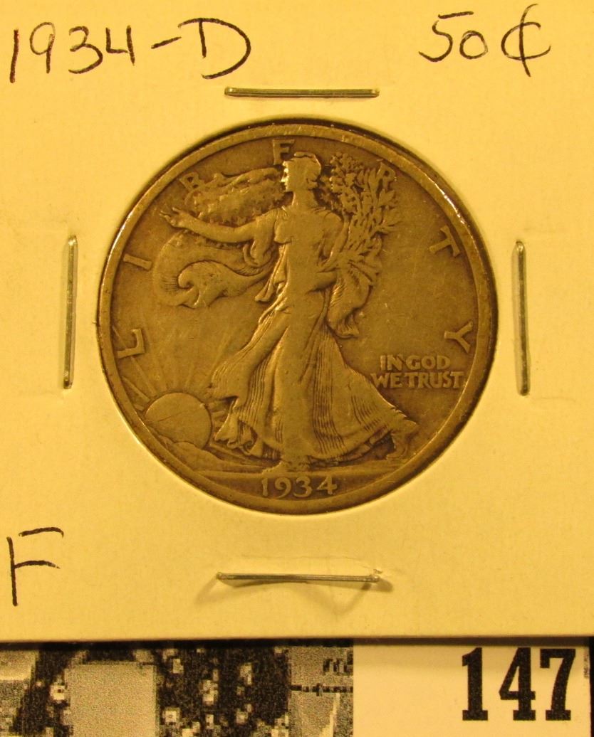 1934 D U.S. Silver Walking Liberty Half Dollar, Fine.