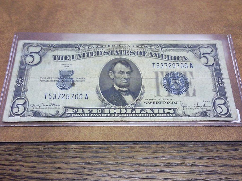 1934-D US $5 SILVER CERTIFICATE (BLUE SEAL)