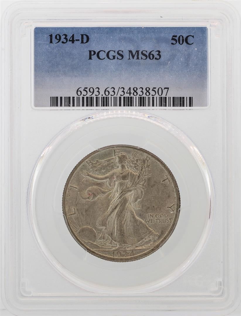 One 1934-D Walking Liberty Half Dollar Coin PCGS MS63. PCGS Graded.