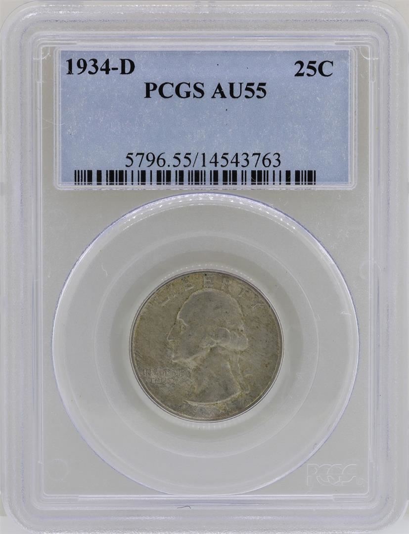 One 1934-D Washington Quarter Coin PCGS AU55. PCGS Graded.