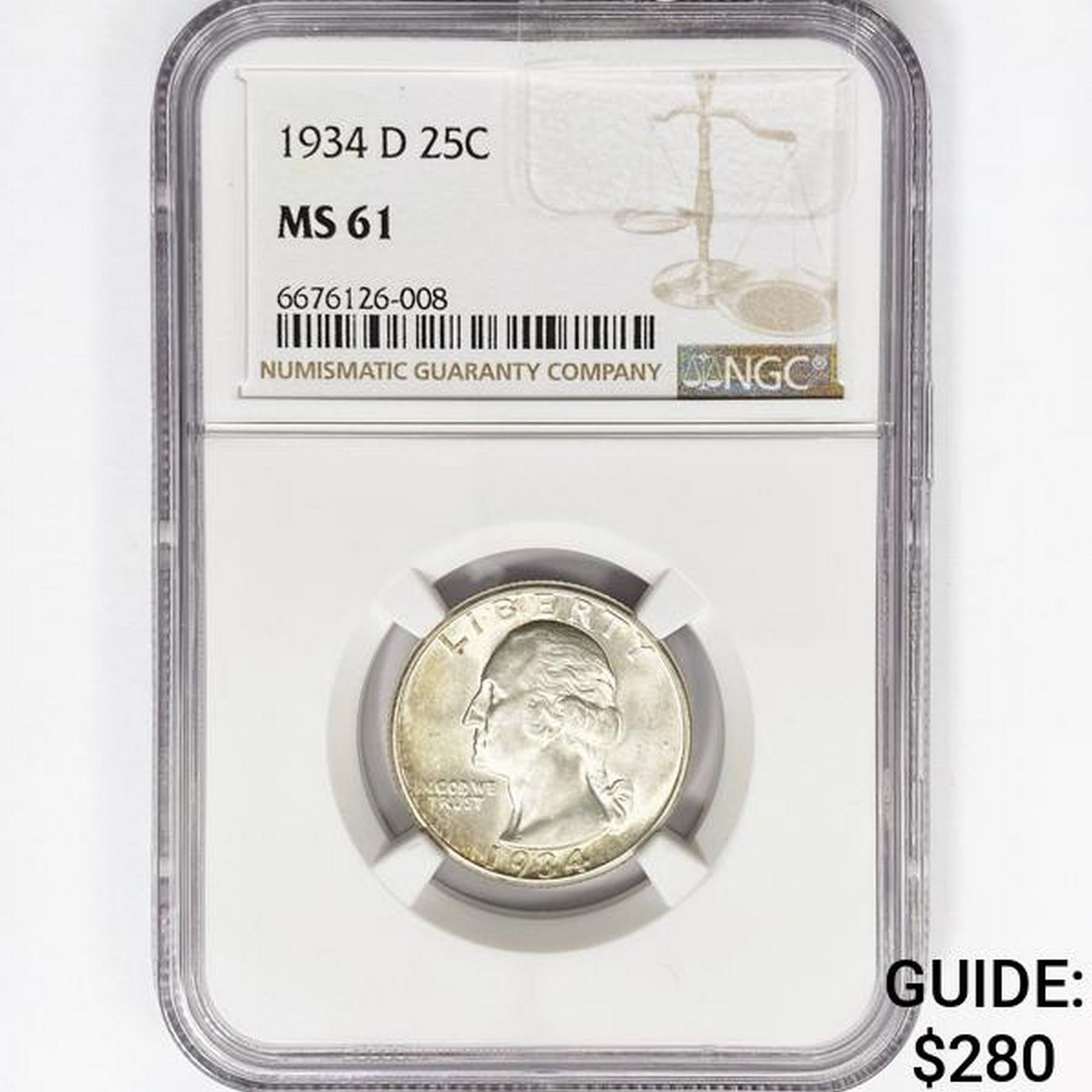 1934-D Washington Silver Quarter NGC MS61