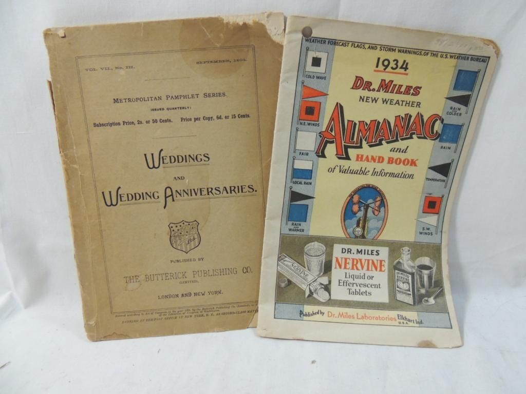 1934 DR. MILES NEW WEATHER ALMANAC AND HAND BOOK OF VALUABLE INFORMATION. AS SHOWN. SEE PHOTO FOR MORE DETAILS.
