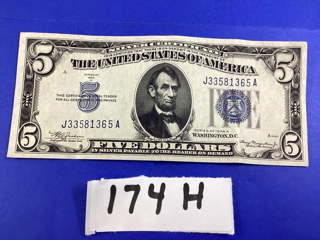 1934 FIVE DOLLAR BLUE SEAL SILVER CERTIFICATE