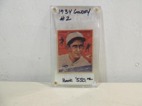 1934 GOUDEY #2 BASEBALL CARD MICKEY COCHRANE. DAMAGE ON FRONT RIGHT SIDE. AS SHOWN. VIEW PICTURE FOR DETAIL.