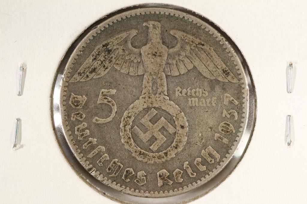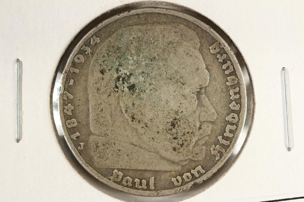 1934-J GERMAN SILVER 5 MARKS WITH SWASTIKA