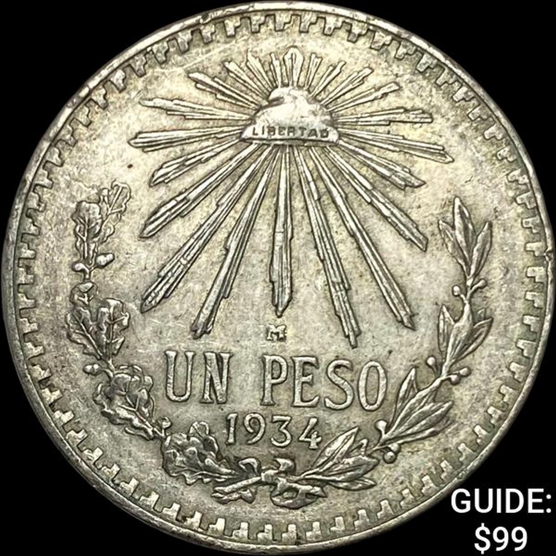 1934-M Mexico Silver Peso CLOSELY UNCIRCULATED