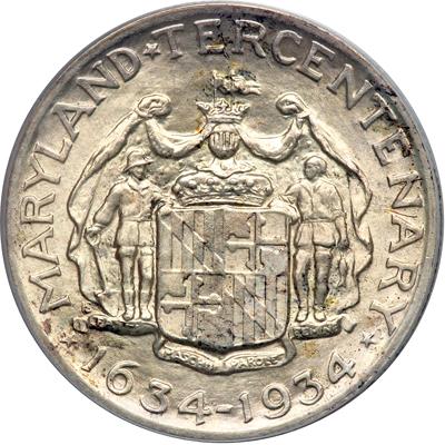 1934 Maryland Half Dollar. PCGS graded MS-65 PQ. Nice light gold toning. Fresh, almost intensely lustrous, gemmy surfaces are free from all but the most inconsequential blemishes. Desirable with this controlled strike, the portrait (which sometimes on the Maryland is flattened on the nose and cheekbone) shows all its fine features here (PCGS # 9328).