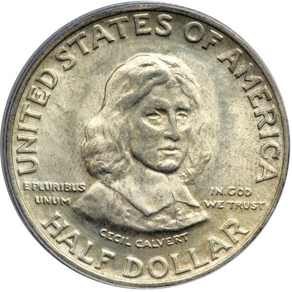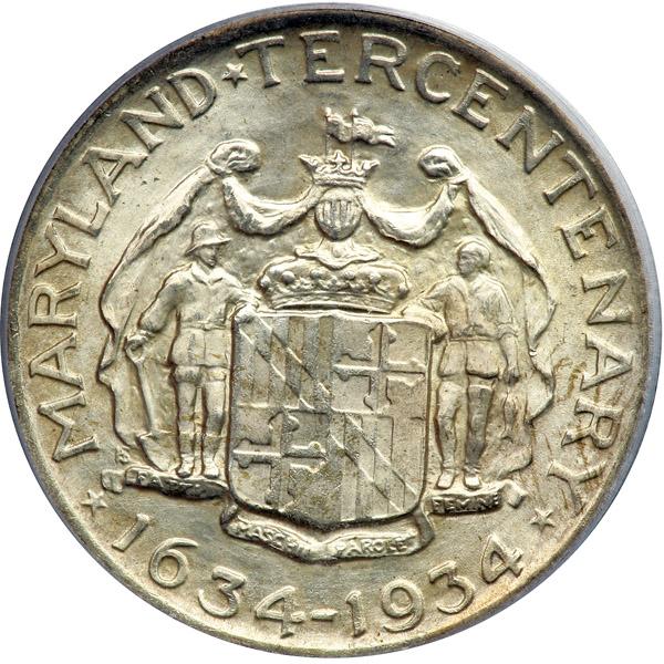 1934 Maryland Half Dollar. PCGS graded MS-66 PQ. Light golden toning. Well struck and choice for the issue, of particular note is the full nose on Calvert's portrait, an often-weak high point on the design. Desirable mint frostiness covers the surface (PCGS # 9328) .