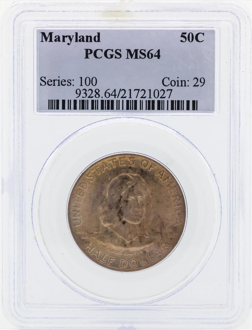One 1934 Maryland Commemorative Half Dollar Coin PCGS MS64. PCGS Graded.