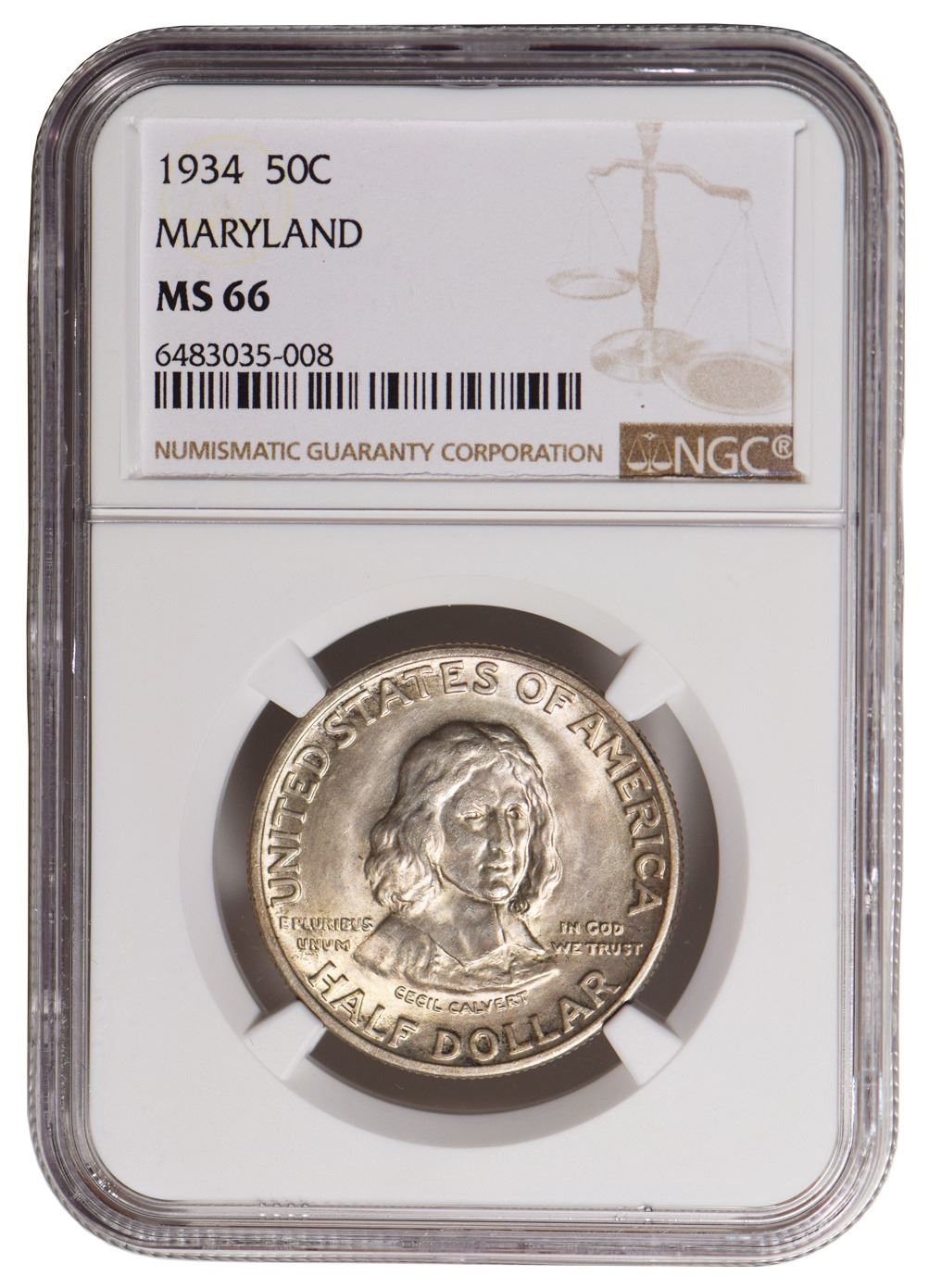 One 1934 Maryland Commemorative Half Dollar NGC MS66.