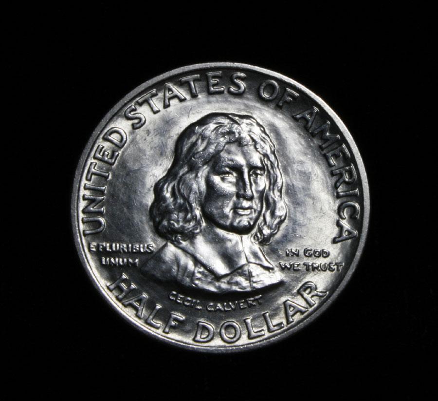 A Brilliant Blast White Example of the Maryland Commemorative, one of the first Commemoratives issued after the hiatus of 1929-1933 when no Commemoratives were issued. When looking at a Maryland Commemorative look for signs of wear on Calvert’s nose, as well as on the top coronet (with flags) and the adjacent mantling. Coin World's Coin Values lists ms65 at $375 and The Wholesale Greysheet lists ms65 at $300. Estimated Value $325