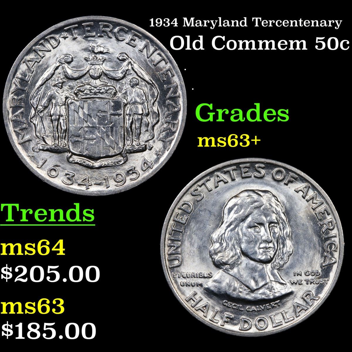 1934 Maryland Tercentenary Old Commem Half Dollar 50c Grades Select+ Unc.