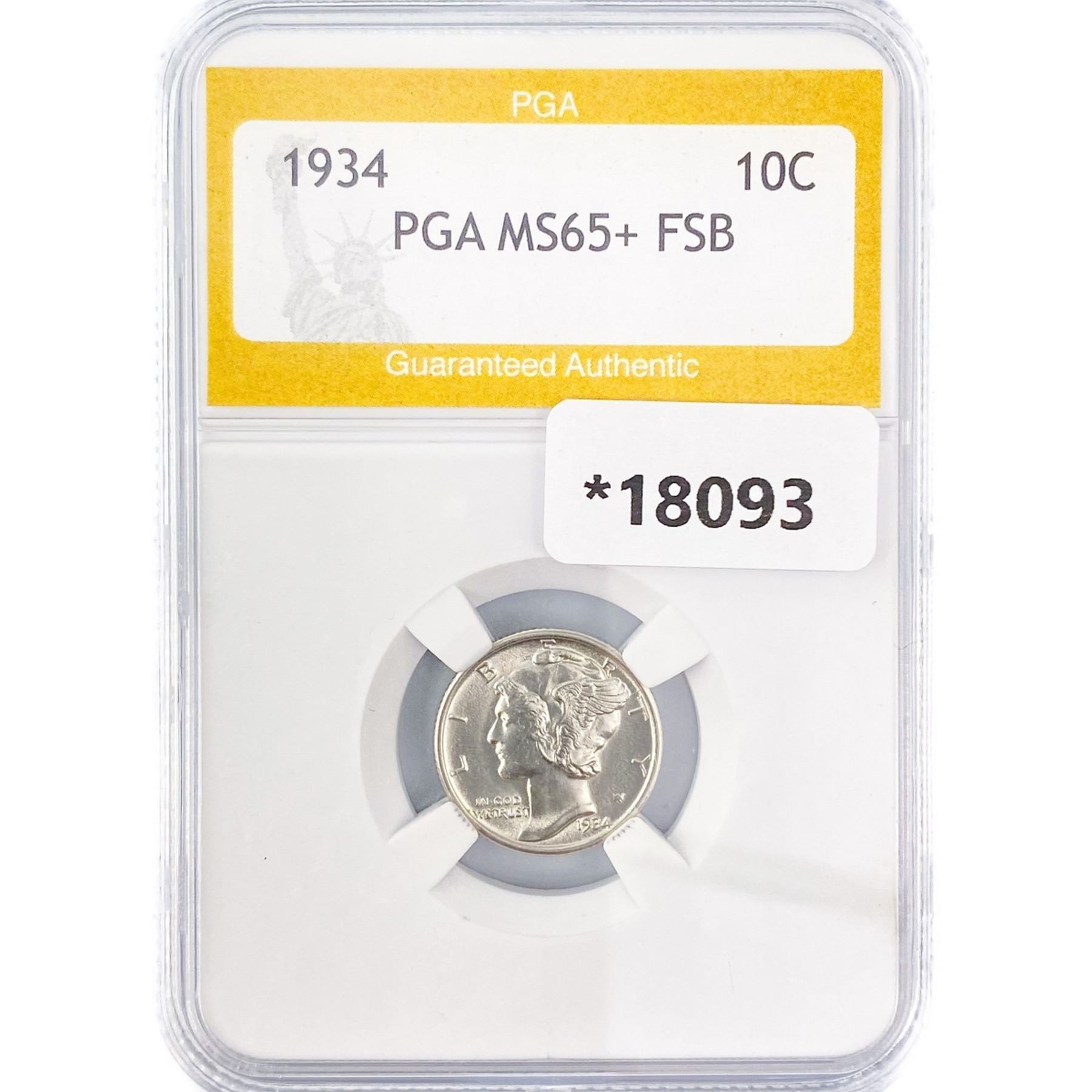 1934 Mercury Silver Dime PGA MS65+ FSB