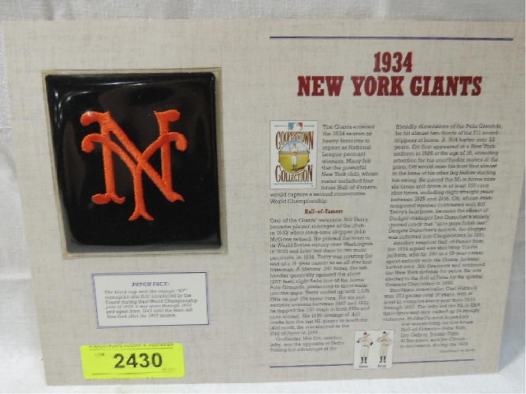 WILLABEE WARD COOPERSTOWN COLLECTION PATCH. PAGE MOUNTED, SEE PICTURES FOR DETAILS.