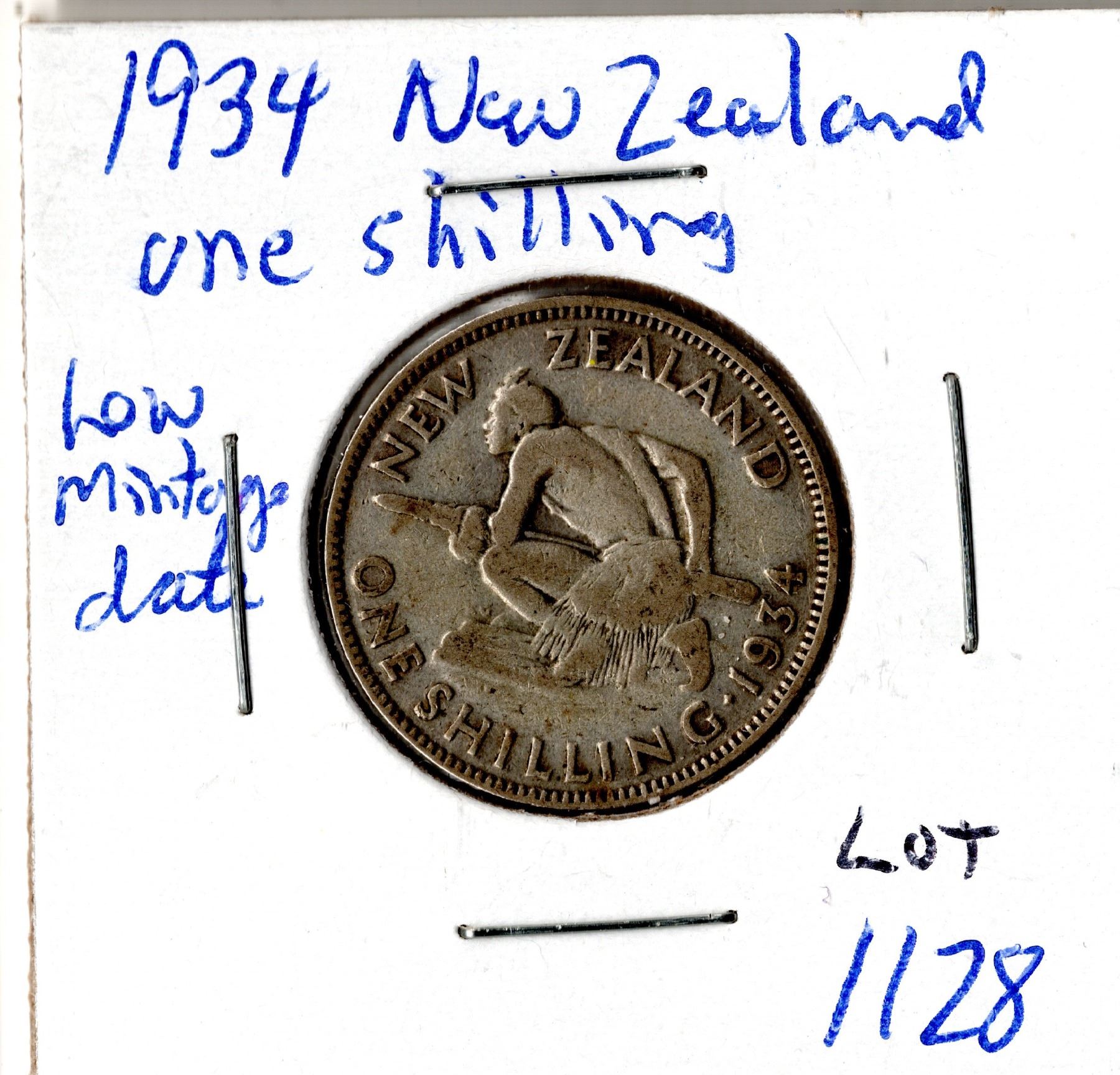 1934 NEW ZEALAND ONE SHILLING SILVER