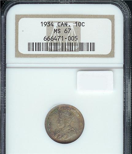 1934 NGC MS67PQ, fully struck with strong lustre. Intense autumn shades on both sides. A superb "George V" example. Rare this nice!