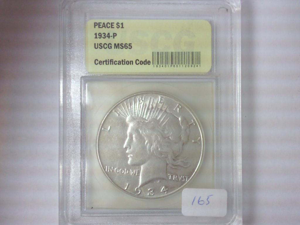 1934-P PEACE SILVER DOLLAR USCG MS65