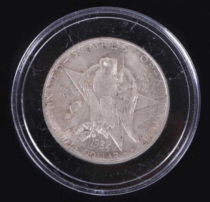 1934 P Texas Commemorative Remember The Alamo Silver Half Dollar Almost Uncirculated to Mint State uncirculated condition.