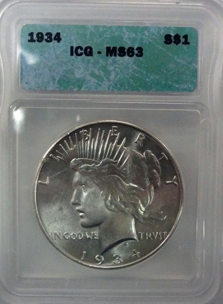 1934 PEACE DOLLAR ICG MS63 NICE!