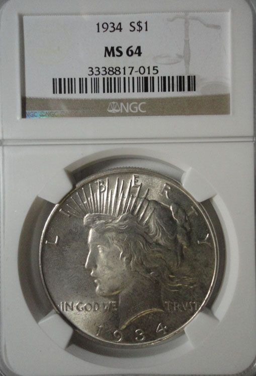 1934 PEACE SILVER DOLLAR NGC MS64