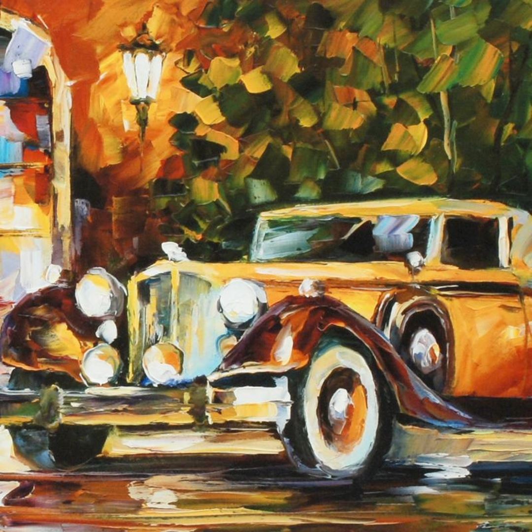 Leonid Afremov's masterful use of color and texture make his paintings unique collectibles that are sure to brighten any wall. "1934 Packard" is a limited edition giclee on stretched canvas, numbered in verso and bears the artist's authorized signature. This piece comes gallery wrapped and ready to hang. Includes Certificate of Authenticity! Measures approx. 35" x 12" (image).