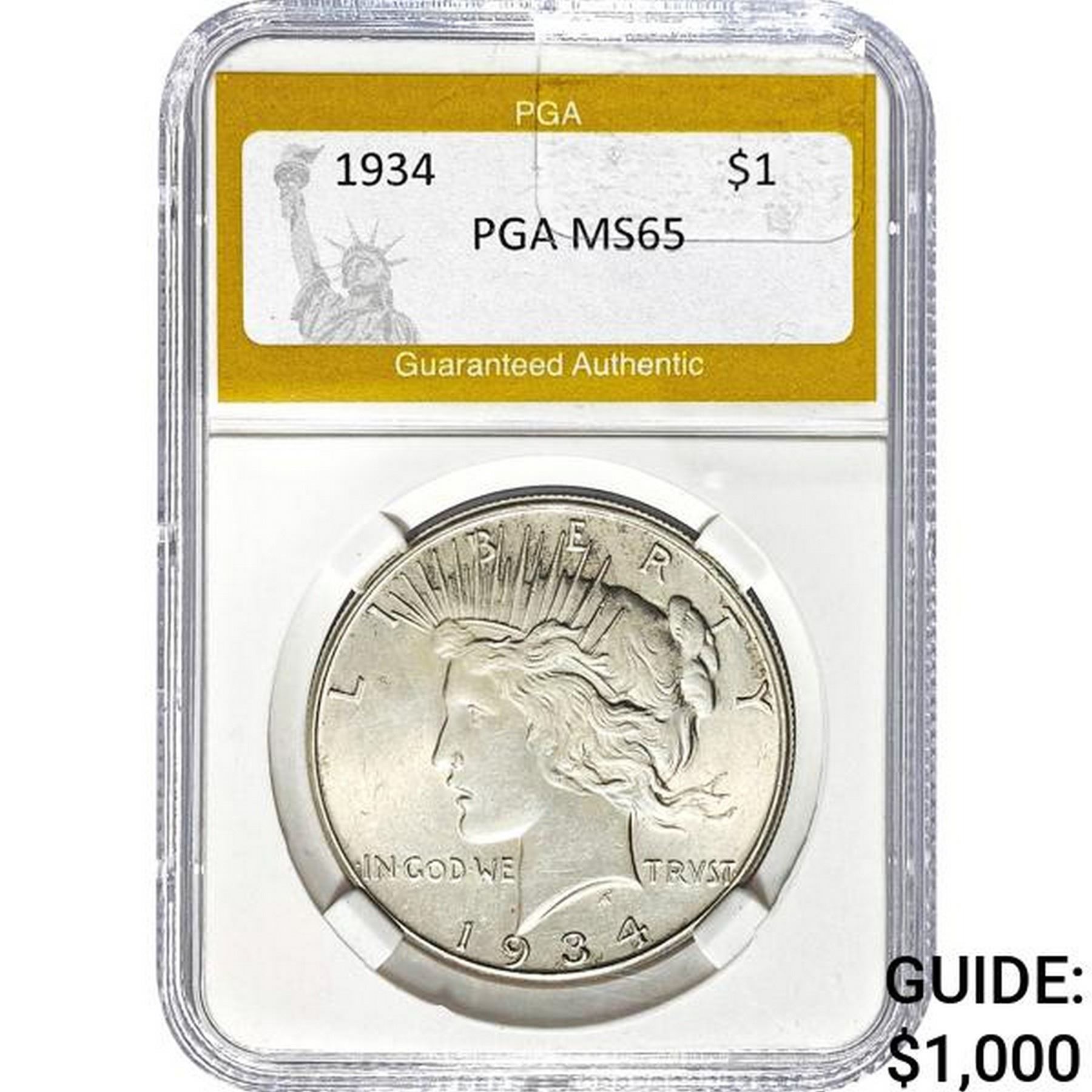 1934 Peace Dollar PGA MS65