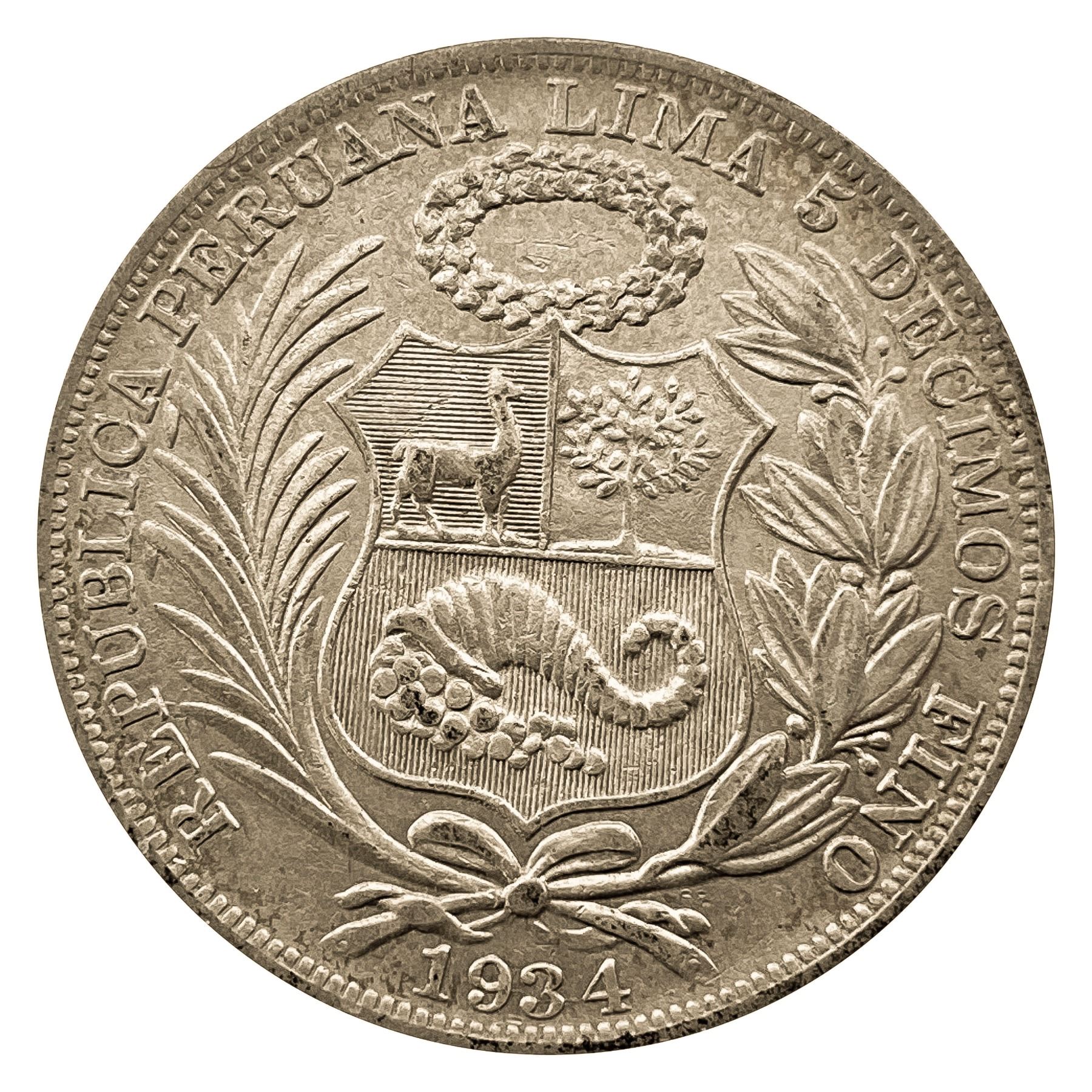 1934 Peru Silver Sol CLOSELY UNCIRCULATED