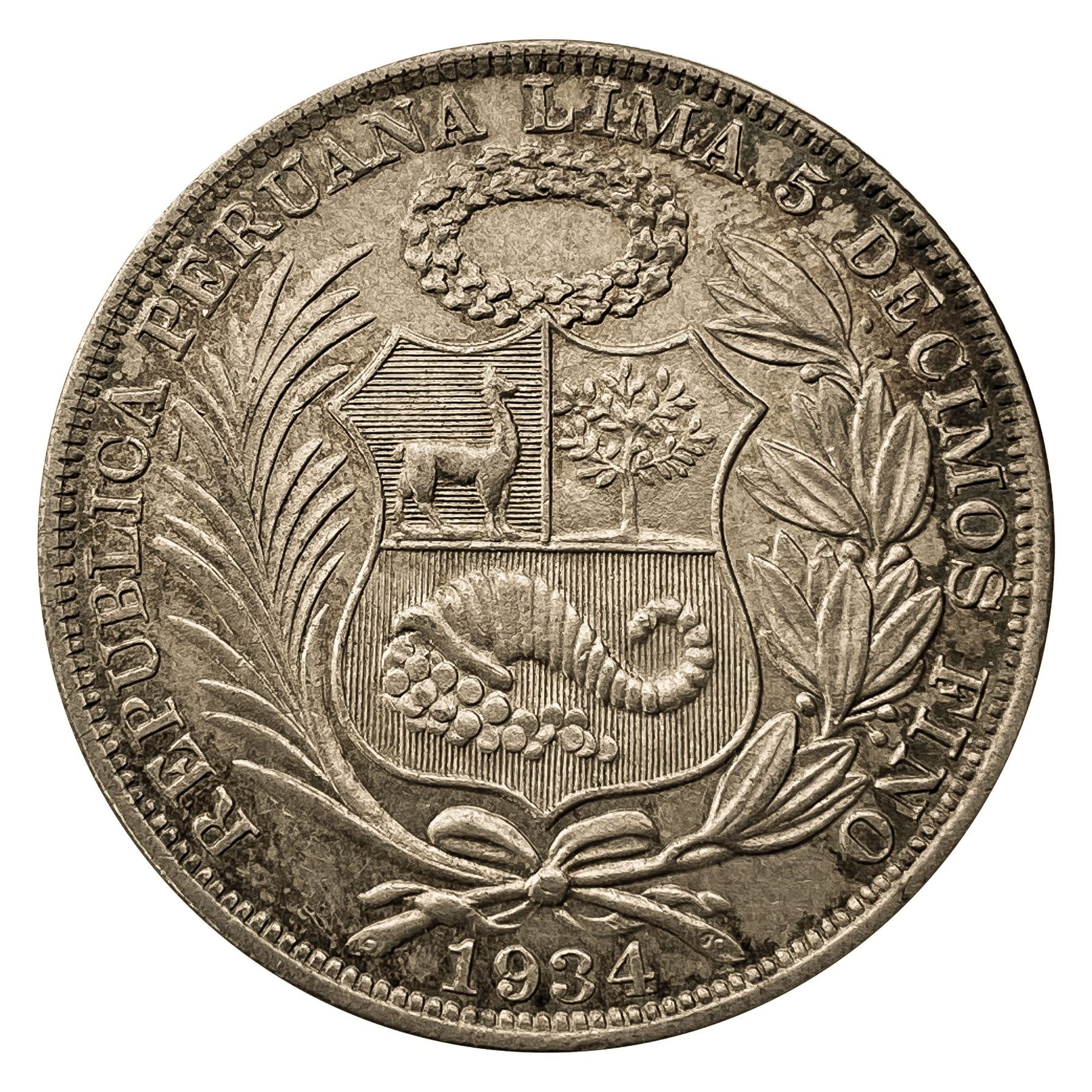 1934 Peru Silver Sol
