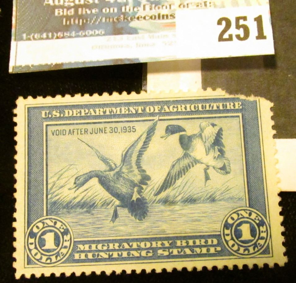 1934 RW1 Federal Migratory Bird Hunting and Conservation $1.00 Stamp. Mint, unsigned, with no gum. U