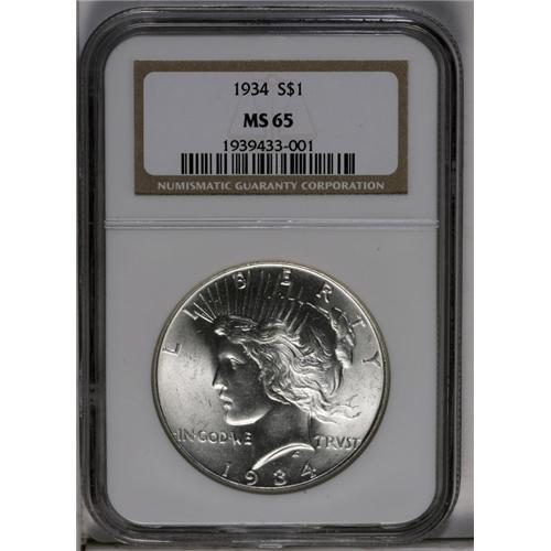 1934 S$1 MS65 NGC. Nicely struck, with fully brilliant 1934