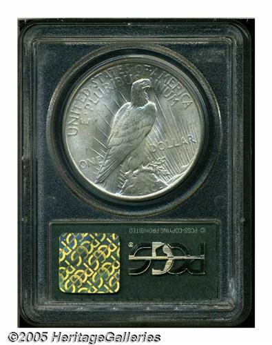 <B>1934<S$1> MS65 PCGS.</B></I> A nearly brilliant Gem that has blazing luster and a powerful strike. A faint fingerprint fragment on the 3 in the date, nonetheless, quite clean for the grade. In a green label holder.