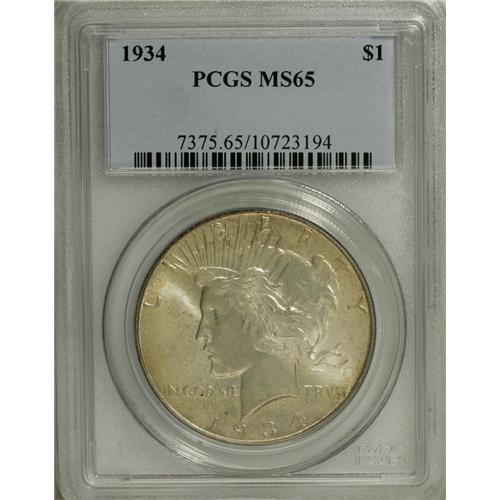 <B>1934 S$1 MS65 PCGS.</B></I> Green-gold and slate-gray intermingle across this luminous and lovely representative. A well struck piece that might have achieved an even finer grade were it not for a few inconspicuous ticks near the profile.<BR><BR><b>Shipping:</b> Coins & Currency (<a target="_blank" href="http://www.heritageauctions.com/common/shipping.php">view shipping information</a>)