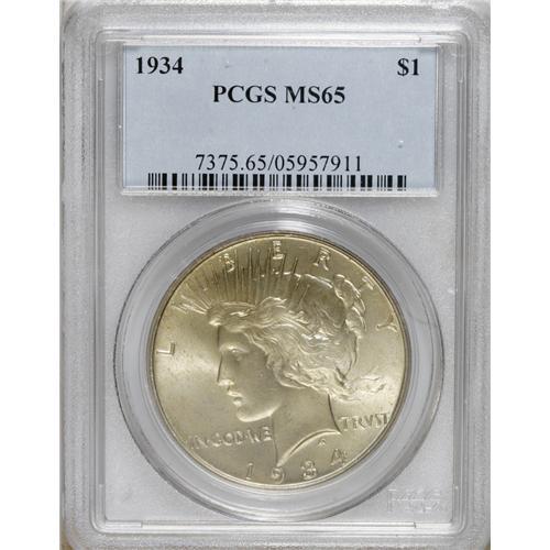 1934 S$1 MS65 PCGS. This low mintage Peace dollar has
