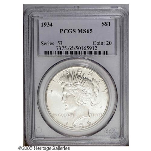 1934 S$1 MS65 PCGS. Wisps of nearly unnoticeable patin 1934[S$1] MS65 PCGS.