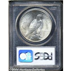 <B>1934<S$1> MS65 PCGS.</B></I> The obverse is virtually untoned, while the reverse shows a touch of gold toning. Cartwheel luster exudes from the well preserved surfaces on each side. A few light ticks on the reverse prevent an even higher grade for this gorgeous Peace dollar. <BR><BR><B>Important notice:</B> Heritage usually auctions material at the rate of 200-250 lots per hour. On some occasions eBay Live bid software or the Internet may not be able to keep up with the pace of the auction. We recommend placing a realistic absentee bid now as insurance to avoid disappointment. Occasionally the auctioneer may eliminate or reject an eBay Live bid, and the auctioneer may also reopen a lot after the close of the eBay live bidding (usually because we missed an audience bid), and may reject your bid even if it shows you as the winning bidder. By bidding via eBay Live, you agree that Heritage may award the lot to another bidder at its sole discretion under the circumstances described above or any other reasonable circumstances. Since eBay bids are not shown to us until we open the lot on the floor, we treat those bids just like floor bids. In most cases the floor responds before the eBay bid is presented to us, due to Internet lag time, so for consistency we have made it a policy that floor bids are always considered first over tie eBay live bids. Also please note that all Heritage lots purchased through eBay Live carry a 20% Buyer's Premium. Please make sure you read the Terms and Conditions before you bid. </span></font></tr></table></td></tr></table>