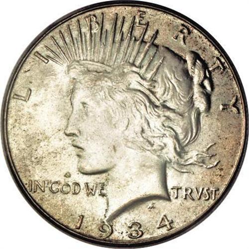 <B>1934-S $1 MS65 PCGS.</B></I> The 1934-S is the key Peace dollar in Mint State. David Bowers (2006) indicates that: "Examples are highly desired in any Mint State category, from MS60 upward." Pleasing luster radiates through dusky silver-gray surfaces on this Gem. Generally well struck, actually better-than-average for the issue. The few minute marks scattered about are not offensive.<BR><BR><B>Coin Engraver:</B> Anthony de Francisci<BR><BR><b>Shipping:</b> Coins & Currency (<a target="_blank" href="http://www.heritageauctions.com/common/shipping.php">view shipping information</a>)