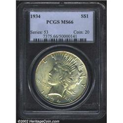 1934 S$1 MS66 PCGS. Golden toning covers each side of this lovely piece with a faint outline of irid
