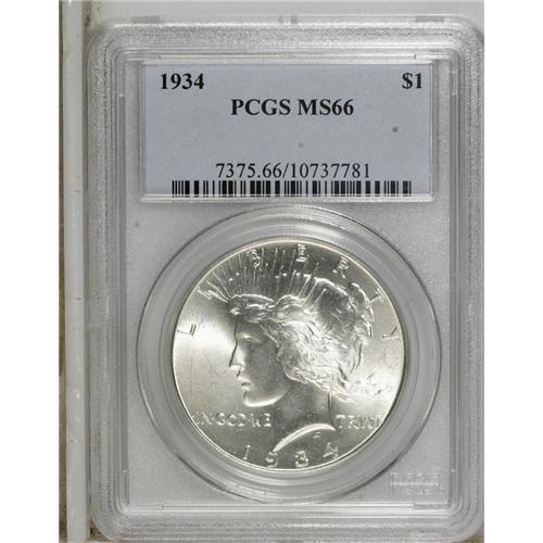 <B>1934 S$1 MS66 PCGS.</B></I> Highly lustrous and practically untoned with unusually strong definition on the obverse. Only a few incidental marks prevent a higher grade. PCGS has certified only three coins finer (1/07).<BR><BR><b>Shipping:</b> Coins & Currency (<a target="_blank" href="http://www.heritageauctions.com/common/shipping.php">view shipping information</a>)