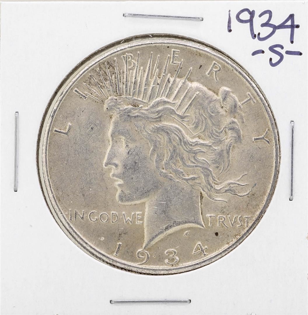 One 1934-S $1 Peace Silver Dollar Coin.