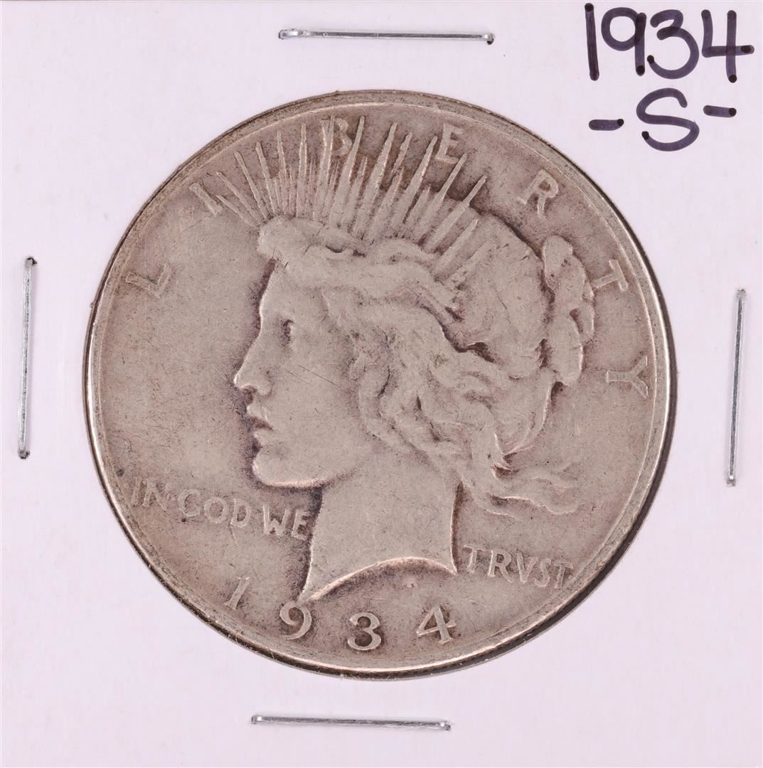 One 1934-S $1 Peace Silver Dollar Coin.