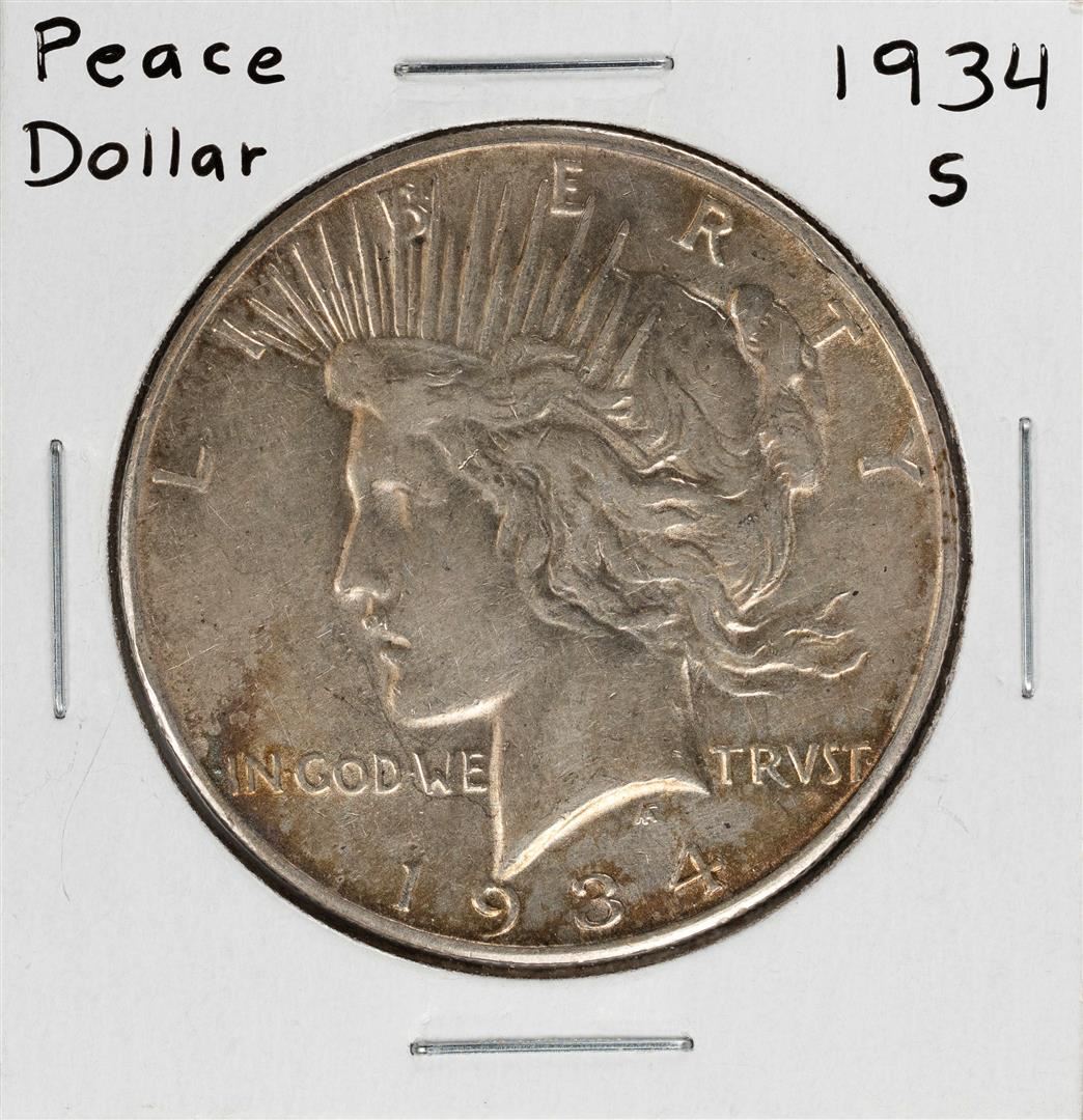 One 1934-S $1 Peace Silver Dollar Coin.