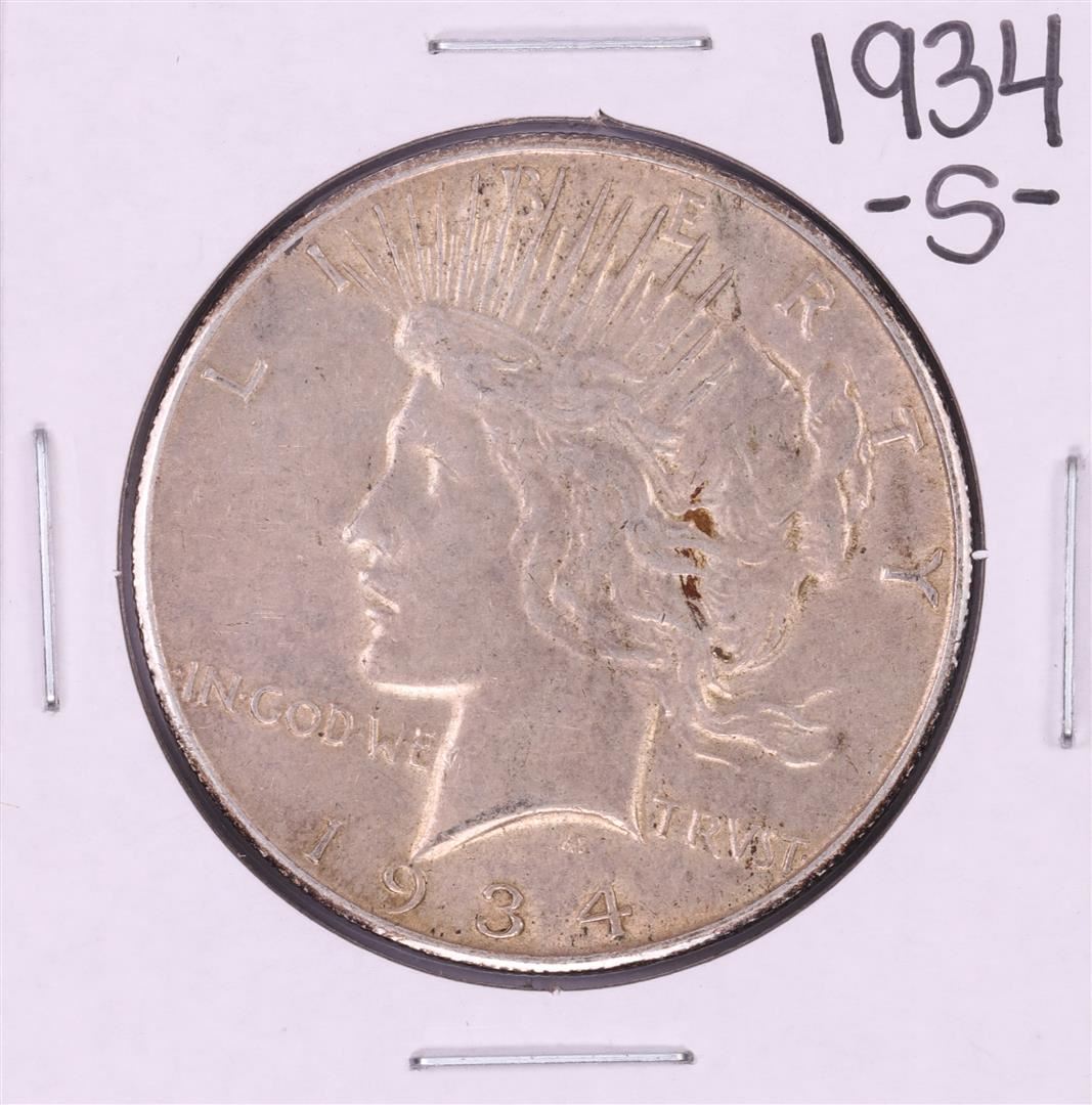 One 1934-S $1 Peace Silver Dollar Coin.