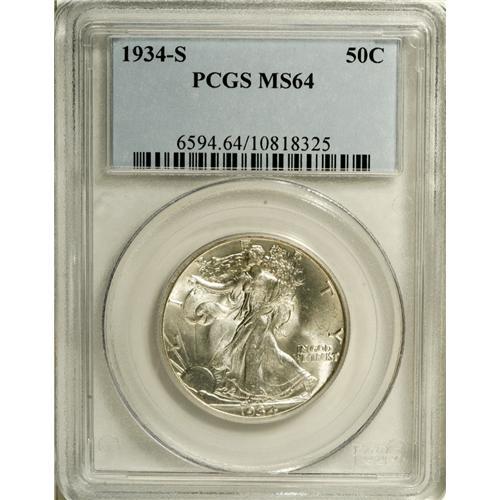 <B>1934-S 50C MS64 PCGS.</B></I> A hint of gold appears in the obverse fields of this highly lustrous near-Gem. Minimally marked with full separation on Liberty's branch hand.<BR><BR><b>Shipping:</b> Coin/Currency (<a target="_blank" href="http://www.heritageauctions.com/common/shipping.php">view shipping information</a>)