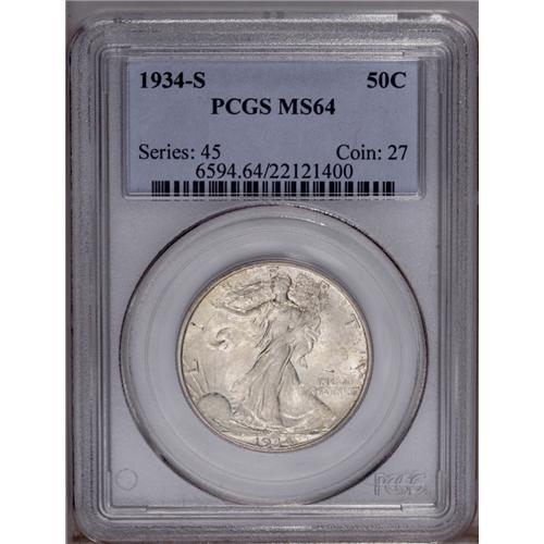 1934-S 50C MS64 PCGS. Dappled olive-green toning embra 1934-S[50C] MS64 PCGS.