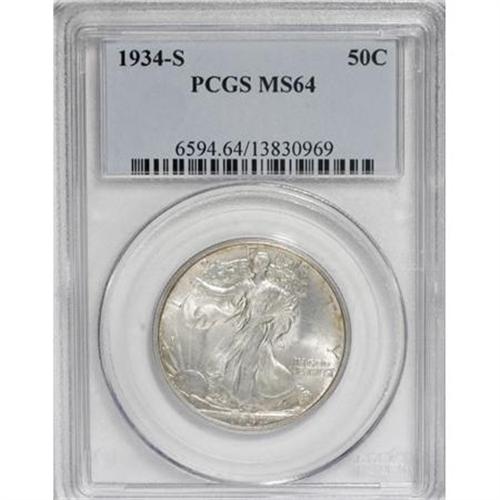 <B>1934-S 50C MS64 PCGS.</B></I> PCGS Population (330/276). NGC Census: (190/124). Mintage: 3,652,000. Numismedia Wsl. Price for NGC/PCGS coin in MS64: $1,025. (#6594)<BR><BR><B>Coin Engraver:</B> Adolph A. Weinman<BR><BR><b>Shipping:</b> Coins & Currency (<a target="_blank" href="http://www.heritageauctions.com/common/shipping.php">view shipping information</a>\)