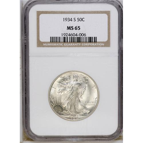 1934-S 50C MS65 NGC. This lovely Gem has a pleasing sh