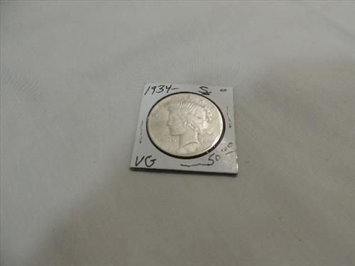 1934-S CIRCULATED (VG) PEACE SILVER DOLLAR. AS SHOWN. VIEW PICTURE FOR DETAIL.